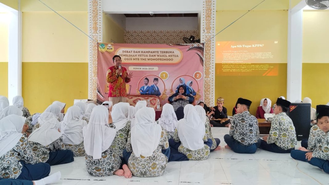 #TemanPemilih, Dalam rangka memberikan pendidikan politik dan pemahaman demokrasi sejak dini, KPU Kabupaten Pekalongan melaksanakan kegiatan sosialisasi demokrasi di MTs YMI Wonopringgo. Sabtu (24 Januari 2026). Sosialisasi pendidikan demokrasi di MTs YMI Wonopringgo bertepatan akan dilaksanakannya pemilihan ketua OSIS guna pembekalan agar mendapatkan wawasan bagi siswa dalam memahami proses demokrasi yang benar. Kegiatan dilaksanakan di Masjid YMI Wonopringgo yang diikuti sebanyak 300 murid. Sosialisasi disampaikan oleh Dika Redana (Anggota KPU Kabupaten Pekalongan yang membidangi divisi Sosdiklih, Parmas dan SDM) bersama Endang Tri Lasmini ( Kasubbag yang membidangi SDM dan Parmas ). Dika menyampaikan apa itu demokrasi, tujuan sistem demokrasi, KPPS, tugas KPPS, pihak pihak yang terlibat di TPS dan bagaimana tata cara dan proses gambaran berlangsungnya kegiatan pemilihan. Endang juga memberikan penjelasan bagaimana surat suara yg digunakan tersebut dinyatakan surat suara yang sah atau tidak sah. Diakhir kegiatan murid diberikan kesempatan sesi tanya jawab selanjutnya diakhiri dengan foto bersama. #kpukabpekalongan #kpumelayani ....