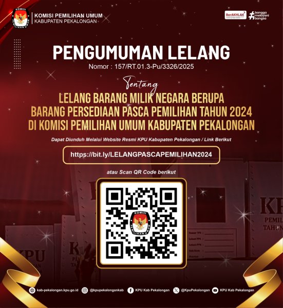 Pengumuman Nomor 704/PP.06.02-Pu/3326/2024 Tentang Pemenang Lomba TPS Unik Foto Di TPS Dan Tiktok Pilkada Pada Pemilihan Bupati Dan Wakil Bupati Pekalongan Tahun 2024 Silahkan Unduh