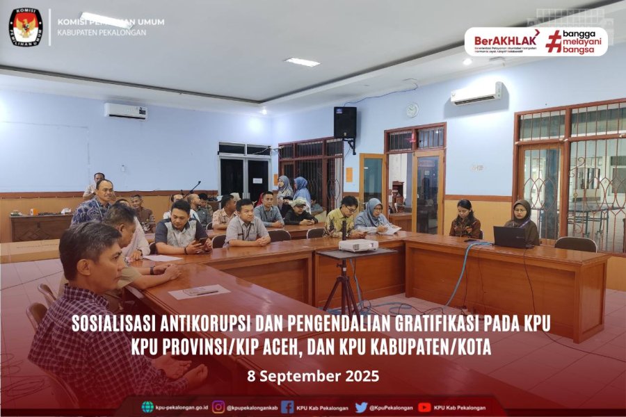 #TemanPemilih, KPU Kabupaten Pekalongan mengikuti Sosialisasi Antikorupsi dan Pengendalian Gratifikasi pada KPU, KPU Provinsi, dan KPU Kabupaten/Kota yang diselenggarakan oleh KPU RI. Senin (8/9/2025).