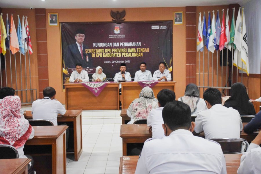 #TemanPemilih, KPU Kabupaten Pekalongan menerima Kunjungan Kerja Sekretaris KPU Provinsi Jawa Tengah, Bapak Tri Tujiana. Kunjungan tersebut disambut langsung oleh Ketua, Anggota dan Sekretaris KPU Kabupaten Pekalongan Senin, (20/10/2025).