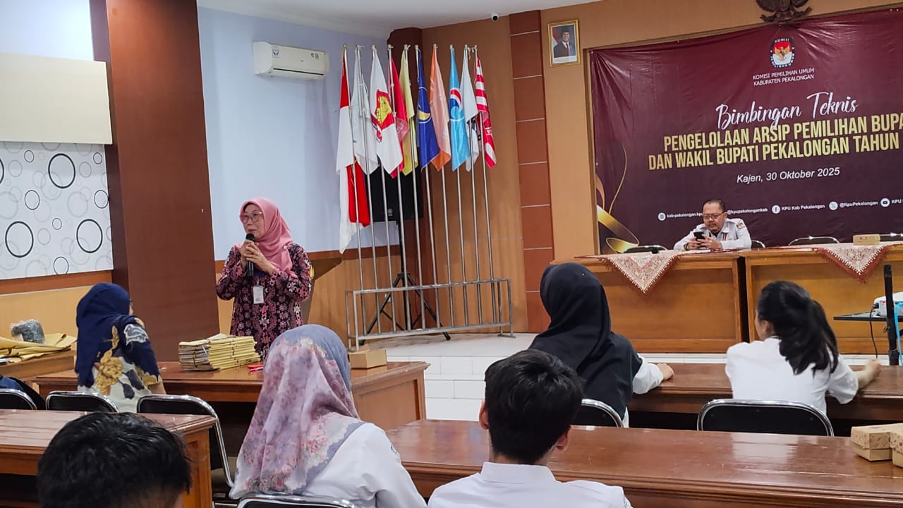 #TemanPemilih, KPU Kabupaten Pekalongan melaksanakan Bimbingan Teknis Pengelolaan Arsip Pemilihan Bupati dan Wakil Bupati Pekalongan Tahun 2024. Kegiatan dilaksanakan di aula kantor KPU Kabupaten Pekalongan. Kamis (30/10/2025).