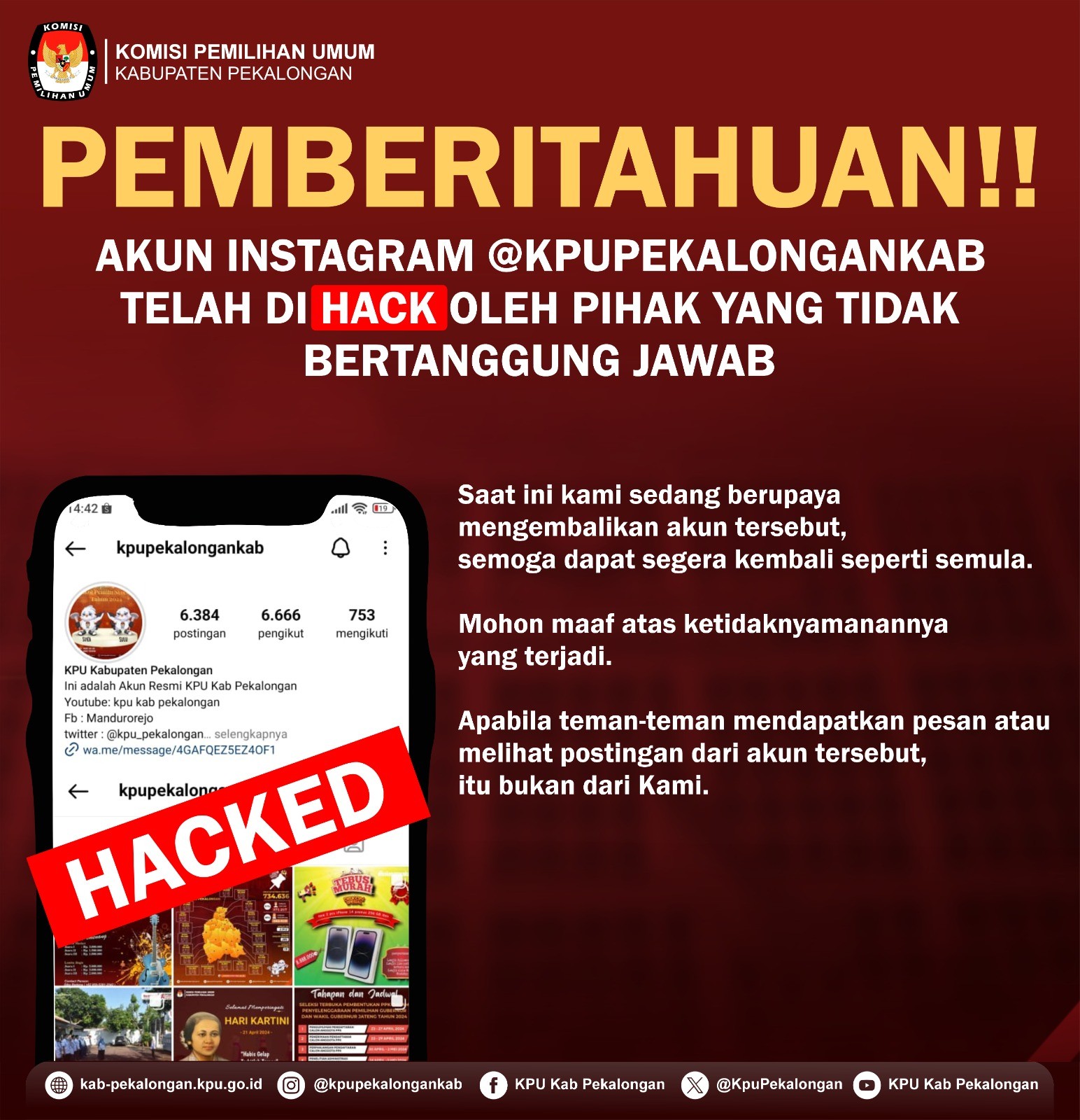 PEMBERITAHUAN AKUN INSTAGRAM KPU KABUPATEN PEKALONGAN DI HACK