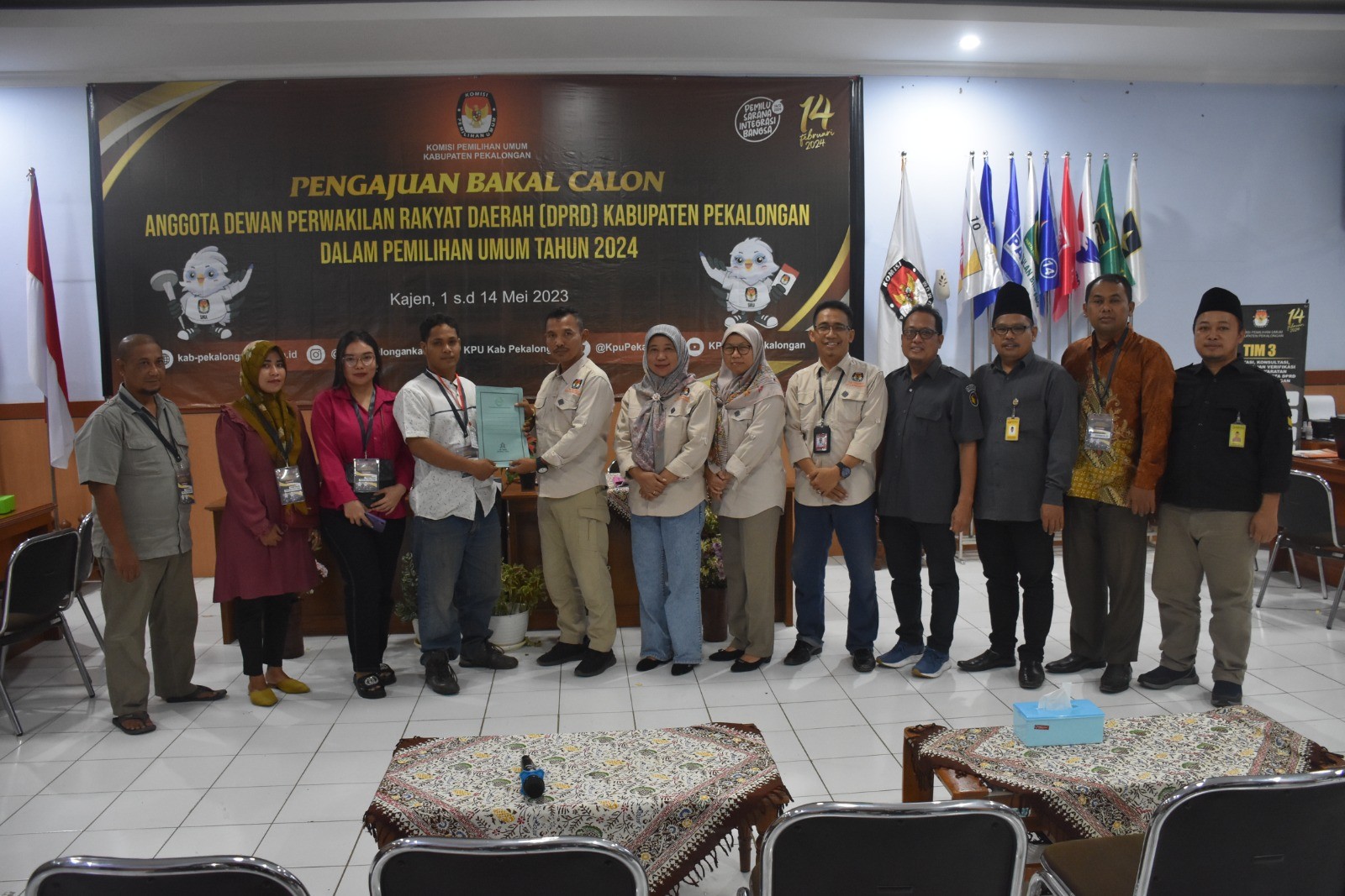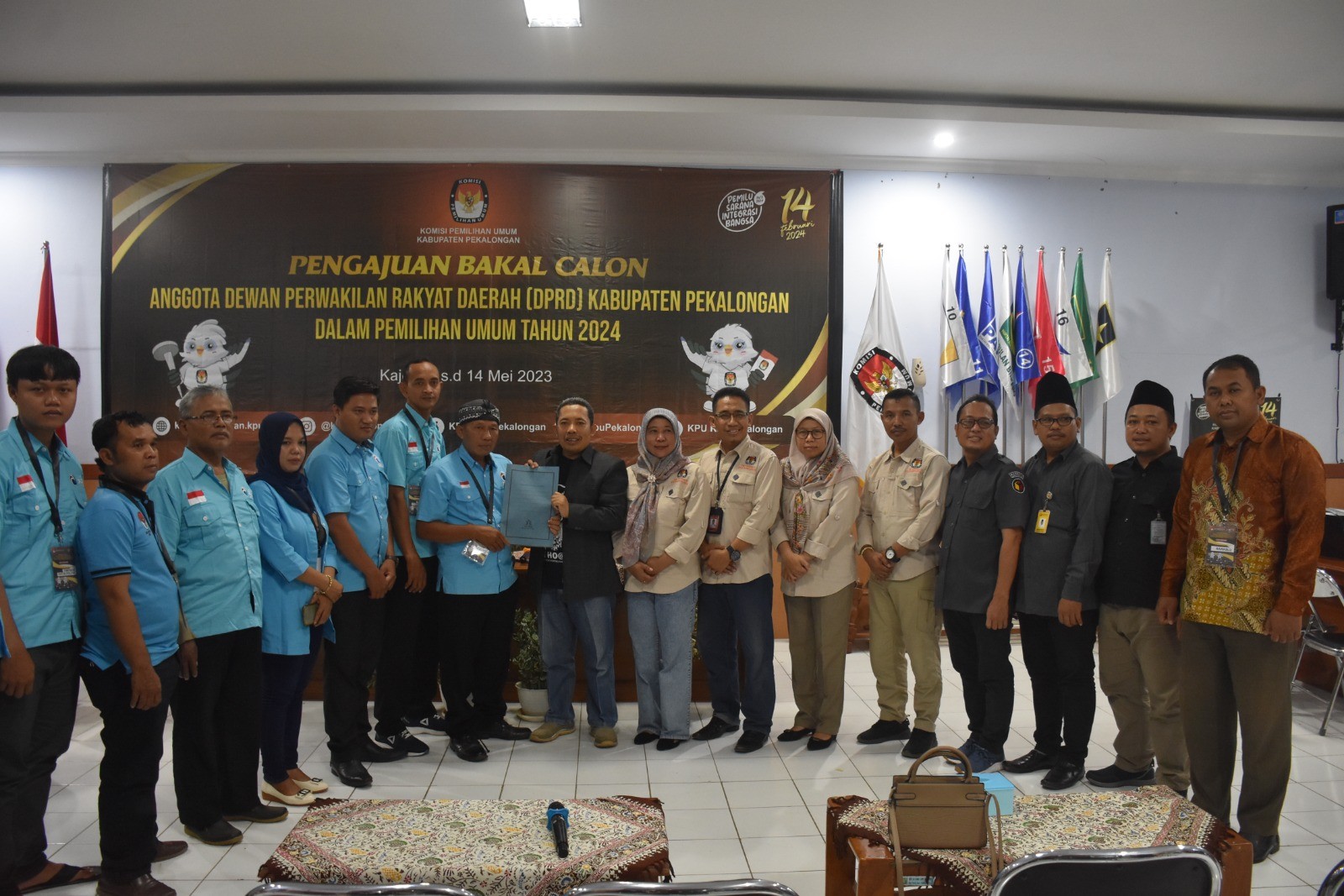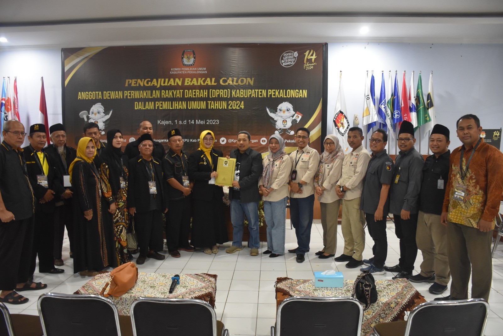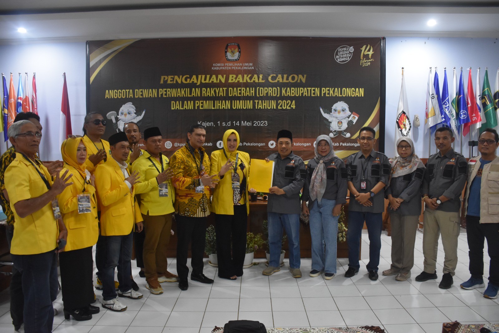 Kajen, KPU Kabupaten Pekalongan, menerima Pengajuan Bakal Calon Anggota DPRD Kabupaten Pekalongan pada Pemilu 2024 dari DPD Partai Golkar, Minggu (14/5/2023) pukul 10.00 WIB.
