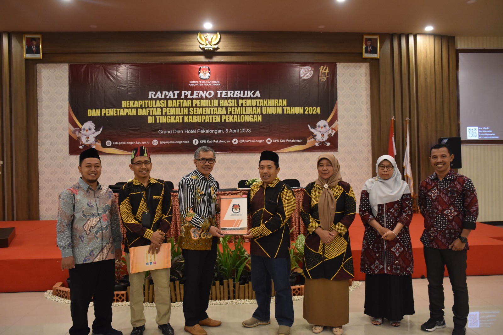Setelah selesai dibacakan KPU Kabupaten Pekalongan menetapkan BA No. 48/PL.01.2-BA/3326/2023 Rekapitulasi Daftar Pemilih Sementara (DPS) Kabupaten Pekalongan dengan jumlah TPS : 2.912, Jumlah Kecamatan : 19, jumlah Desa : 285, jumlah laki-laki : 372.993, jumlah perempuan : 364. 833, Laki-laki dan Perempuan : 737.826 pemilih.