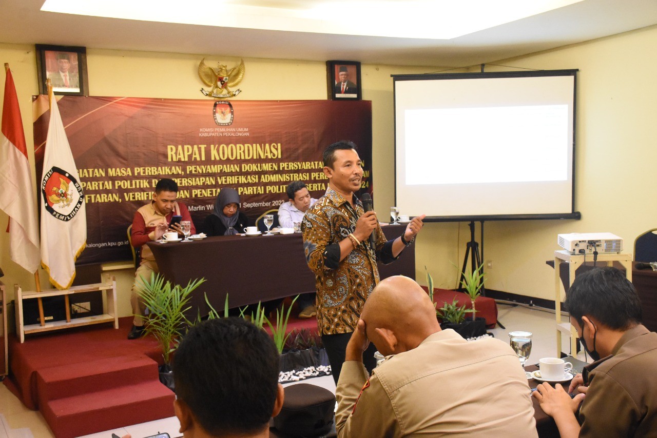 Pekalongan, kab-pekalongan.kpu.go.id- KPU Kabupaten Pekalongan mengadakan Sosialisasi Pemilihan Umum Tahun 2024 Kepada Pemilih Pemula. Acara tersebut dilaksanakan di Hotel Dafam Pekalongan, Jl Urip Sumuharjo No 53 Pekalongan, Jumat (14/10). KPU mengundang Ketua BEM Perguruan Tinggi dan Ketua Osis SMA, SMK, MA yang berada di wilayah Pekalongan. Acara diawali dengan sambutan dari Abi Rizal, A.Md (Ketua KPU Kabupaten Pekalongan) yang sekaligus membuka jalannya acara. Dalam sambutannya Abi Rizal menyampaikan “Kami berharap kepada Generasi muda sekarang atau yang biasa di sebut Gen Z jadilah buzzer khasanah yang menyebarkan dan mensosialisasikan fakta dan informasi seputar kepemiluan, Berhati-hatilah kepada hoax. Kalian inilah yang nantinya akan menjadi generasi penerus yang melanjutkan memimpin bangsa” Kemudian acara dilanjutkan dengan materi yang diisi oleh tiga narasumber yaitu M. Ahsin, S.Pd., M.Pd (Anggota KPU Kabupaten Pekalongan Divisi Teknis Penyelenggaraan), Laelatul Izah, S.Pd.I (Anggota KPU Kabupaten Pekalongan Divisi Perencanaan, Data dan Informasi) dan Herminiastuti Lestari, S.Kom, SH, MH (Anggota KPU Kabupaten Pekalongan Divisi Hukum dan Pengawasan). M. Ahsin mengangkat tema “Bergerak Bersama Sukseskan Pemilu dan Pilkada serentak 2024”, kemudian Laelatul Izah menyampaikan kepada para peserta cara untuk mengecek namanya sudah terdaftar sebagai pemilih atau belum melalui aplikasi lindungi Hakmu di Playstore. Kemudian Herminiastuti menyampaikan mengajak pada para pemilih pemula untuk menjadi pemilih yang cerdas, pilihlah wakil rakyat berdasarkan hati nurani lihatlah Visi Misinya jangan Golput, dan katakan tidak pada politik uang”