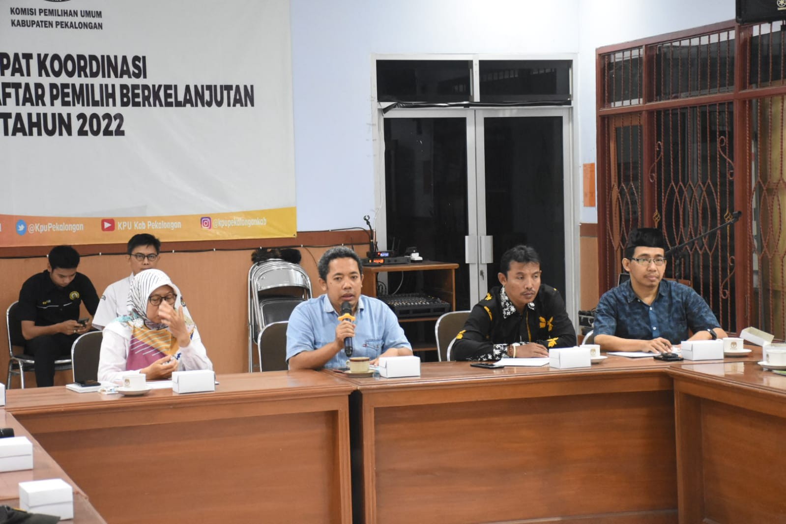 Kajen, kab-pekalongankab.kpu.go.id- Jumat (11/02/2022) bertempat di Aula KPU Kabupaten Pekalongan, KPU Kabupaten Pekalongan menemui perwakilan dari mahasiswa Jurusan Komunikasi dan Penyiaran Islam Fakultas Ushuluddin Adab dan Dakwah IAIN Pekalongan yang mendapatkan tugas perkuliahan untuk membuat majalah dengan KPU Kabupaten Pekalongan sebagai tema utama. Acara diawali dengan sambutan dari Achyar Budi Pranoto, S.Mn (Anggota KPU Kabupaten Pekalongan Divisi Sosialisasi , Pendidikan Pemilih, Partisipasi Masyarakat dan Sumberdaya Manusia). Dalam sambutannya Achyar menyampaikan “KPU Kabupaten Pekalongan menyambut baik kedatangan adik-adik Mahasiswa, kami sangat terbuka dan mempersilahkan jika memang inginmelakukan penelitian di KPU” Selanjutnya acara diteruskan dengan Presentasi dari Suwandi Aris Wibowo sebagai Perwakilan dari mahasiswa. Suwandi menyampaikan “Kami berterimakasih kepada KPU Kabupaten Pekalongan yang bersedia meluangkan waktu untuk kami, sebagai gambaran kami akan melakukan penelitian di KPU untuk selajutnya akan kami muat di majalah dengan nama Aspirasi (Asupan Pilihan Demokrasi) yang akan memuat profil KPU Kabupaten Pekalongan dan beberapa tulisan berjenis Press release, Feature dan advetoral dalam majalah tersebut.”