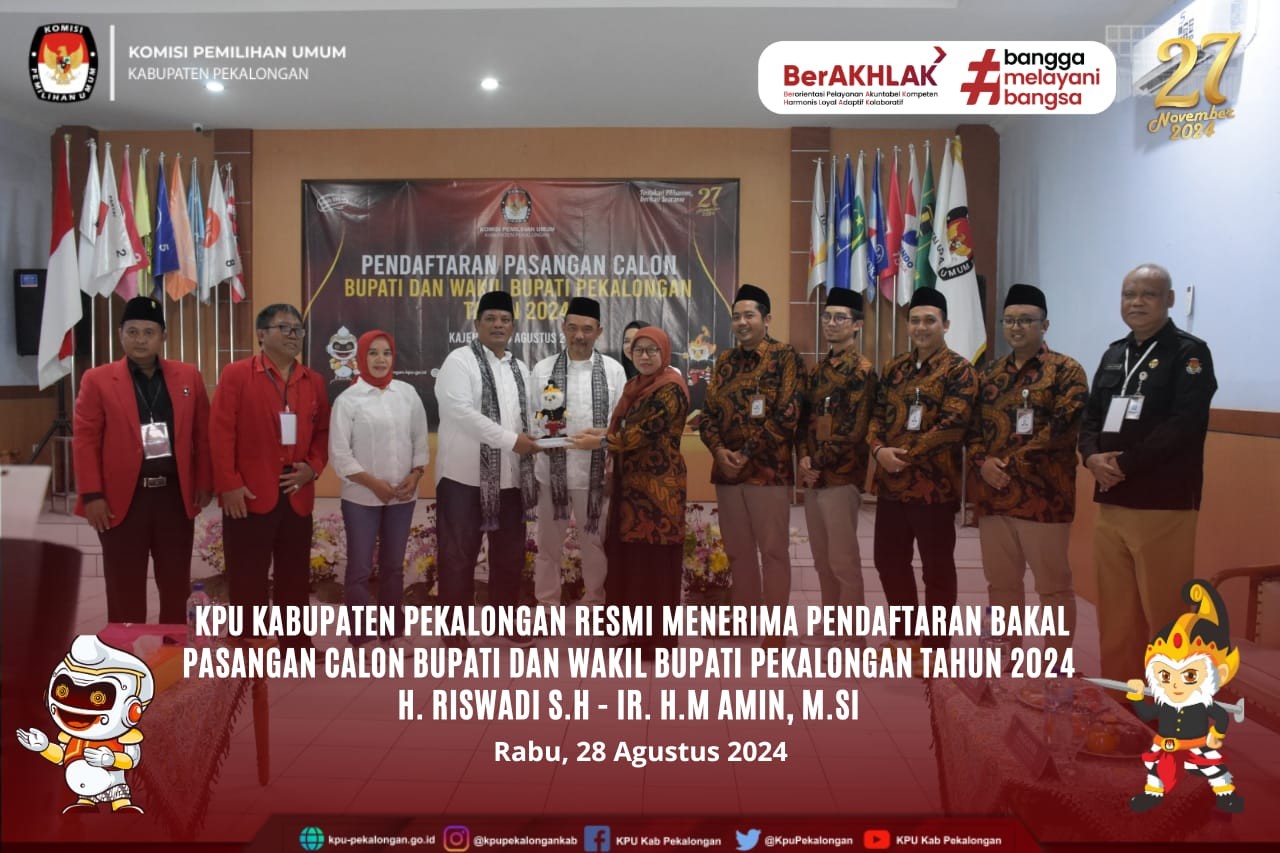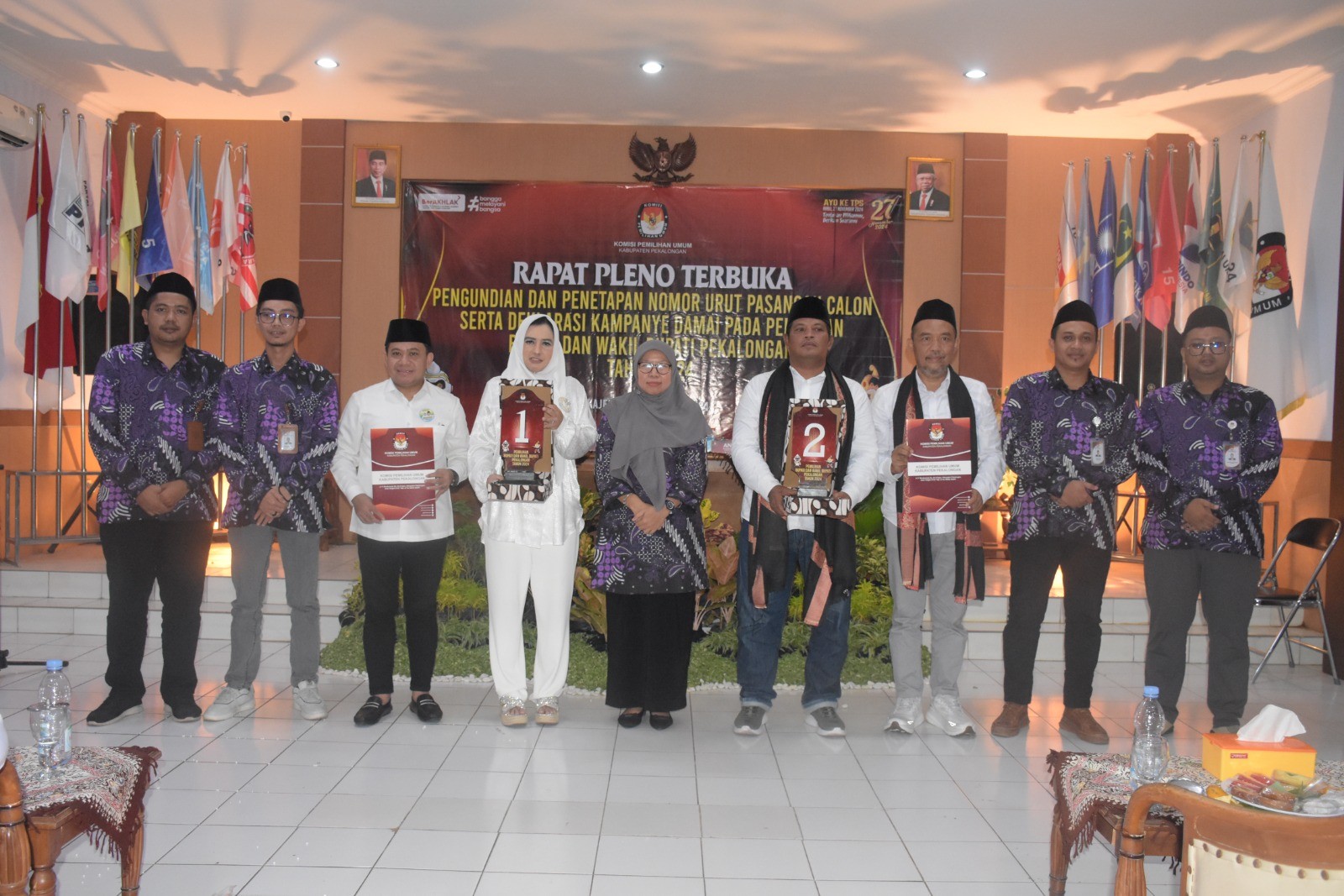#TemanPemilih, KPU Kabupaten Pekalongan Melaksanakan Rapat Pleno Terbuka Untuk Pengundian Nomor Urut Pasangan Calon Bupati Dan Wakil Bupati Pekalongan Dalam Pemilihan Kepala Daerah Tahun 2024. Rapat Pleno berlangsung di Aula KPU Kabupaten Pekalongan. Senin (23/09/2024) Ketua KPU Kabupaten Pekalongan, Laelatul Izah menyampaikan bahwa “KPU Kabupaten Pekalongan telah melakukan pengundian nomor urut pasangan calon Bupati dan Wakil Bupati berdasarkan pasal 121 Peraturan KPU No. 08 Tahun 2024 tentang pencalonan Gubernur dan Wakil Gubernur, Bupati dan Wakil Bupati serta Walikota dan Wakil Walikota. Pengundian ini dilakukan berdasarkan berita acara nomor 123/PL.02.3-BA /3326/2024 tentang penetapan Pasangan calon peserta pemilihan Bupati dan Wakil Bupati Pekalongan Tahun 2024. Berikut adalah hasil pengundian nomor urut pasangan calon Bupati dan Wakil Bupati Pekalongan Tahun 2024: Nomor Urut 1 (satu) calon Bupati Hj. Fadia Arafiq, S.E., M.M dan Wakil Bupati H. Sukirman, S.S., M.S. yang diusung oleh PKB, Partai Gerindra, Partai Golkar, Partai Gelora, PKS, PAN, Partai Demokrat, PSI, Partai PERINDO, PPP. Nomor urut 2 (dua) calon Bupati H. Riswadi, S.H. - Ir. H. Mukhammad Amin, M.Si yang diusung oleh Partai Demokrasi Indonesia Perjuangan (PDI-P). Selanjutnya dilakukan penandatanganan deklarasi damai dan deklarasi zero knalpot bronk pemilihan pasangan calon Bupati dan Wakil Bupati Pekalongan Tahun 2024 yang disaksikan oleh Ketua Bawaslu, Ketua DPRD, Kapolres Pekalongan , Dandim 0710 Pekalongan, Kepala Kejaksanaan Negeri Kajen, Kepala Bakesbangpol, Ketua Desk Pilkada, dan Kedua Tim Pendukung calon Bupati dan Wakil Bupati Pekalongan Tahun 2024. #kpumelayani #pilkadaserentak2024