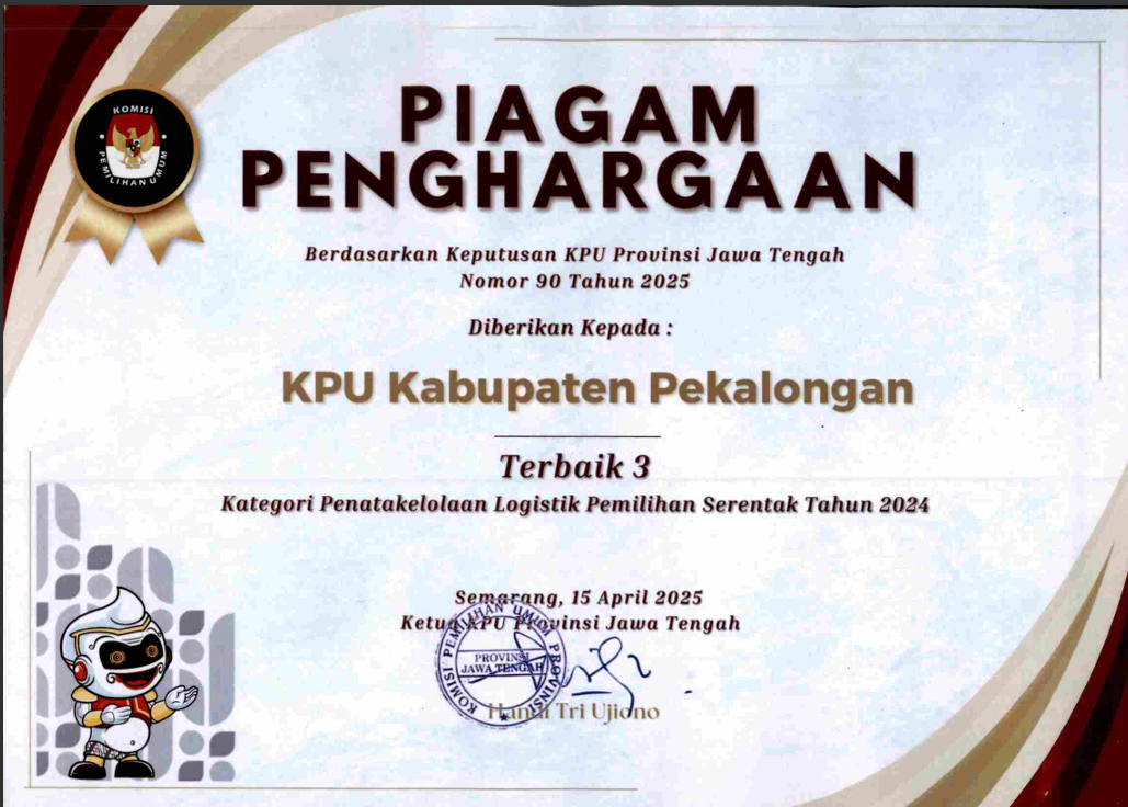 Terbaik 3 Kategori Penatakelolaan Logistik Pemilihan Serentak Tahun 2024